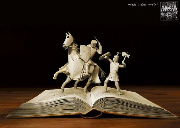 Stunning images made from paper sculptures were created for a Czech bookstore, Anagram, whose slogan is "Words Create Worlds"—a perfect art direction for the slogan, with outstanding technical execution.